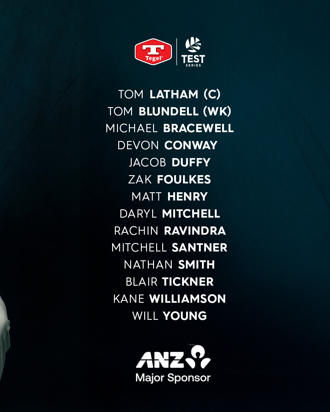 ٹام لیتھم سیریز میں نیوزی لینڈ ٹیم کی قیادت کریں گے جبکہ سابق کپتان کین ولیمسن کی بھی اسکواڈ میں واپسی ہو گئی ہے۔ جیکب ڈفی، زیک فولکز اور بلیئر ٹکنر کو بھی ٹیم میں جگہ مل گئی ہے۔