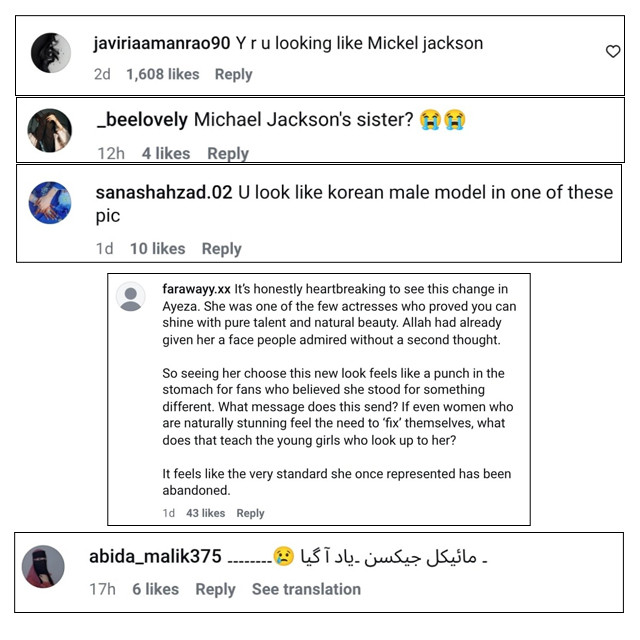 تصاویر وائرل ہوئیں تو ایک صارف نے لکھا کہ عائزہ خان تو اب مائیکل جیکسن لگ رہی ہیں۔