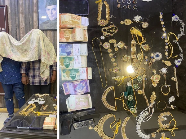 قبضے سے 7 لاکھ روپے نقد، جیولری، موبائل فونز، اسلحہ اور موٹرسائیکل برآمد ہوئی