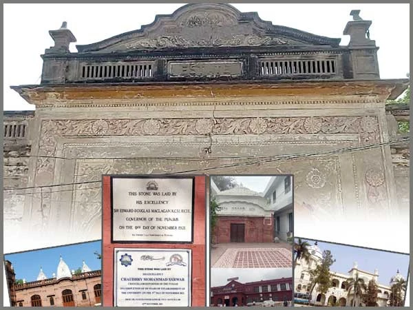 یہاں کے سو سال سے بھی پرانے مرکزی بلاک کے سامنے دو سنگِ مرمر کی تختیاں لگی ہیں جو ایک ہی تاریخ اور مہینے میں لگائی گئی ہیں لیکن دونوں کے بیچ سو سال کا فرق ہے۔ ایک افتتاحی تختی ہے جو اس وقت کے گورنر پنجاب سر ایڈورڈ ڈگلس میکلیگن کے ہاتھوں لگائی گئی تھی جس پہ درج ذیل الفاظ درج ہیں؛
