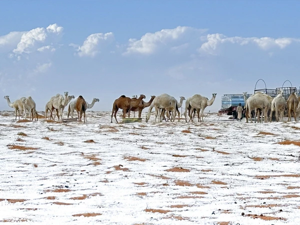 سوشل میڈیا پر ایک ویڈیو خاص طور پر توجہ کا مرکز بنی، جس میں برف سے ڈھکے صحرا میں کھڑے اونٹ دکھائی دے رہے ہیں، جسے سعودی عرب کے نایاب ترین مناظر میں سے ایک قرار دیا جا رہا ہے۔