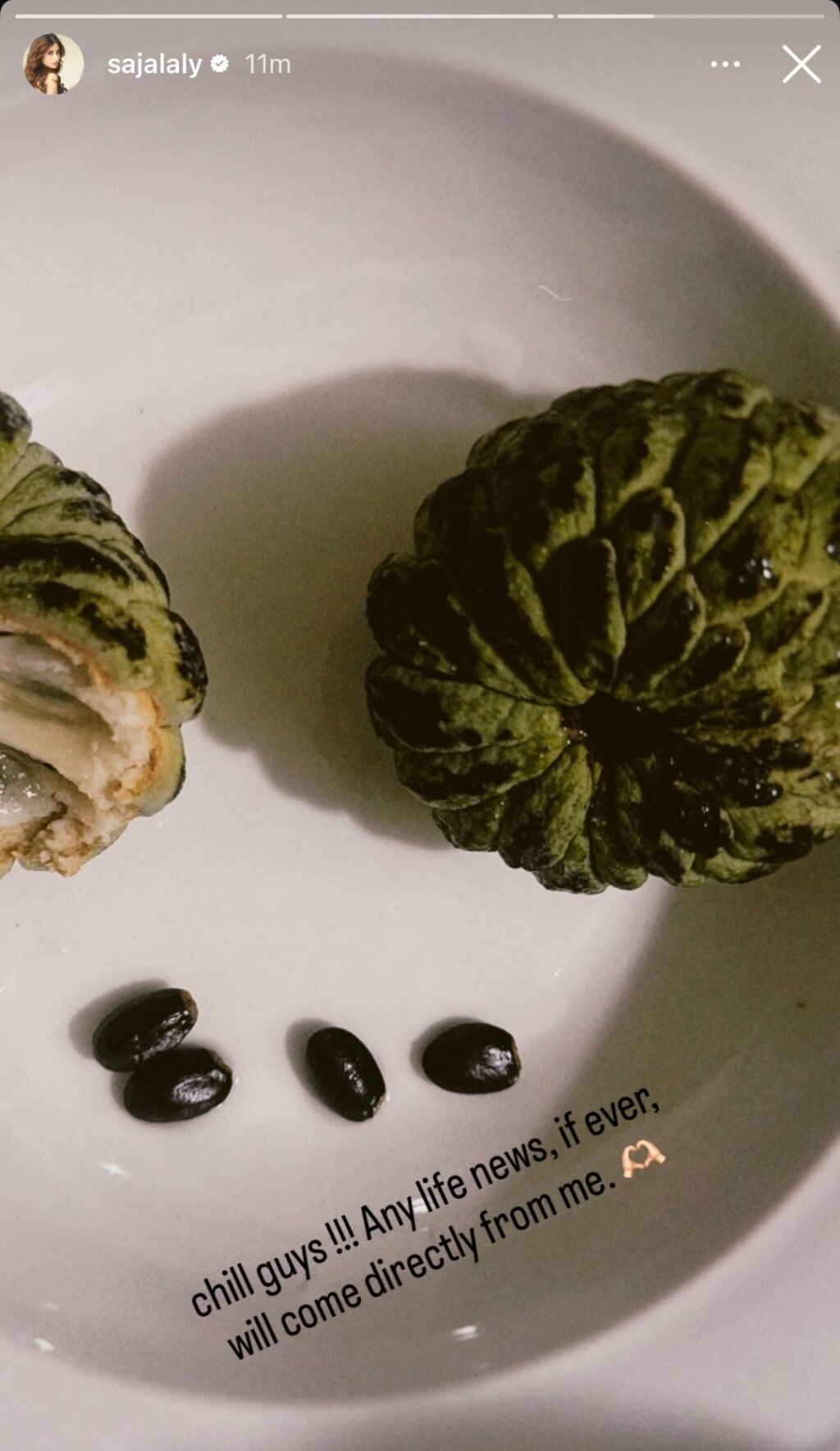 تاہم سجل علی نے ان خبروں پر ردِعمل دیتے ہوئے اپنی انسٹاگرام اسٹوری میں واضح کیا کہ ان کی زندگی سے متعلق کوئی بھی خبر جب بھی ہوگی، وہ خود ہی بتائیں گی۔