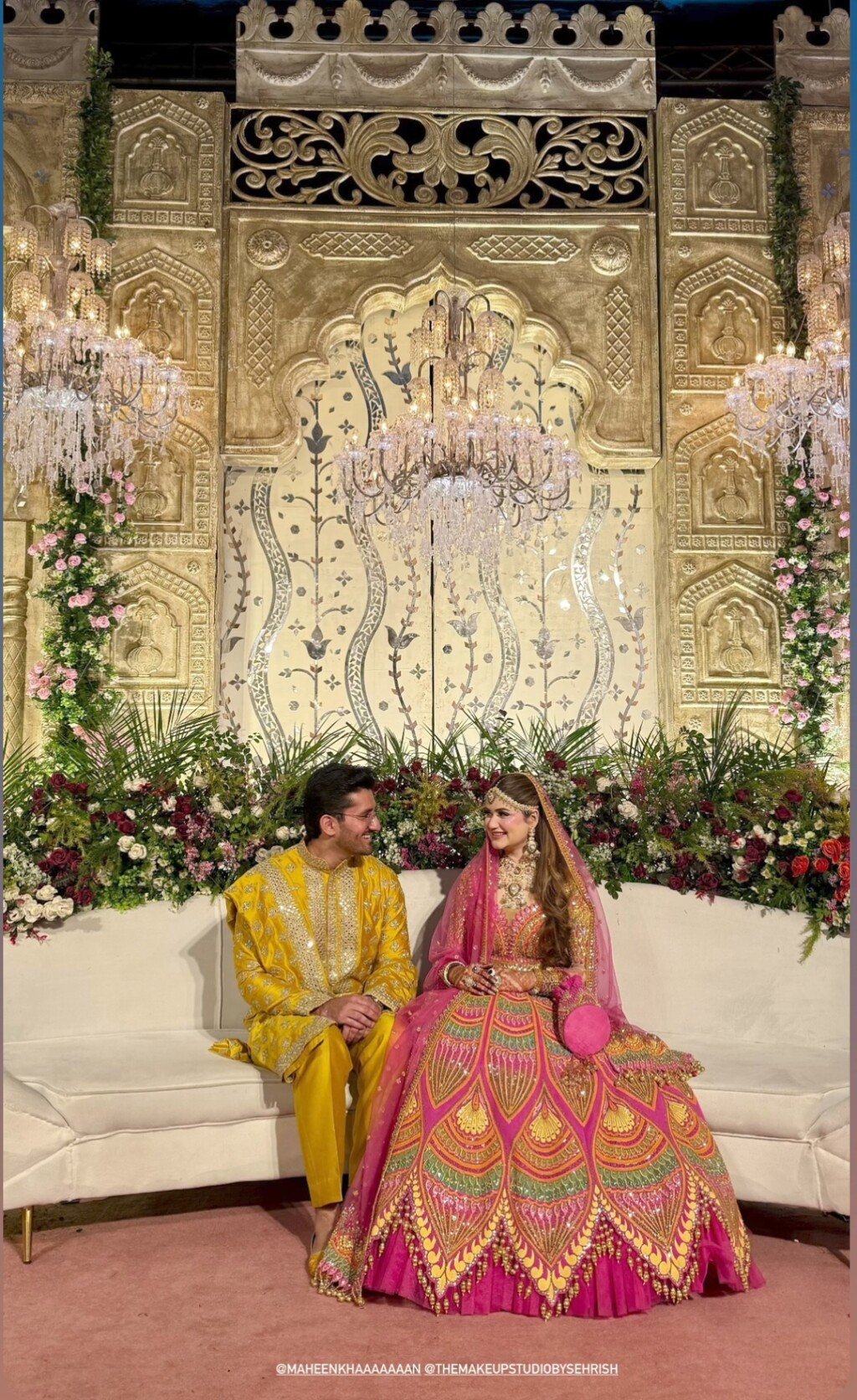 لاہور میں منعقد ہونے والی روایتی مایوں کی خوبصورت تقریب کی تصاویر سوشل میڈیا پر وائرل ہوئی تھیں جس پر صارفین کی جانب سے ماہین خان کے کپڑوں کو لے کر شدید تنقید کی گئی تھی۔