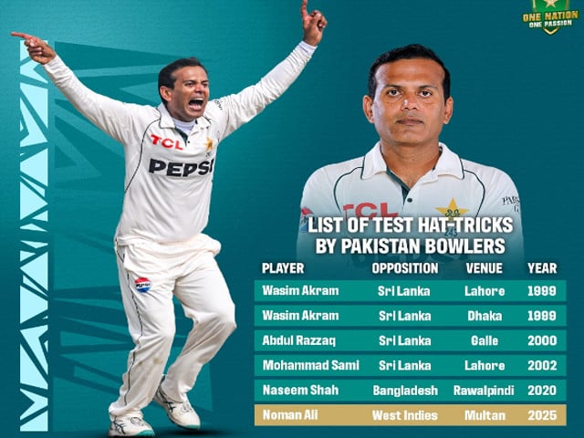 نعمان علی سے قبل سن 1999 میں وسیم اکرم نے سری لنکا کے خلاف دو مرتبہ ٹیسٹ میں ہیٹ ٹرک مکمل کی تھی۔ عبدالرزاق نے 2000 میں سری لنکا کے خلاف، محمد سمیع نے 2002 میں سری لنکا کے خلاف اور نسیم شاہ نے 2020 میں بنگلا دیش کے خلاف ہیٹ ٹرک کی تھی۔