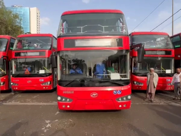 شہر قائد میں تقریباً نصف صدی کے بعد ڈبل ڈیکر بسیں آج سڑکوں پر رواں دواں ہیں، جس سے کراچی کے باسیوں کی پرانی یادیں تازہ ہو گئیں۔