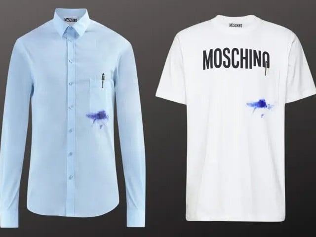 موسچینو نے مارچ 2025 میں مردانہ فیشن کے لیے ایک ایسی شرٹ متعارف کروائی جس کی جیب پر نیلے رنگ کے قلم کا داغ بنا ہوا تھا۔ اس شرٹ کی قیمت 755 ڈالر رکھی گئی، جس پر لوگوں نے طنزیہ انداز میں کہا کہ اسکول کے زمانے میں قلم کے داغ اس سے کہیں بہتر ہوا کرتے تھے۔
