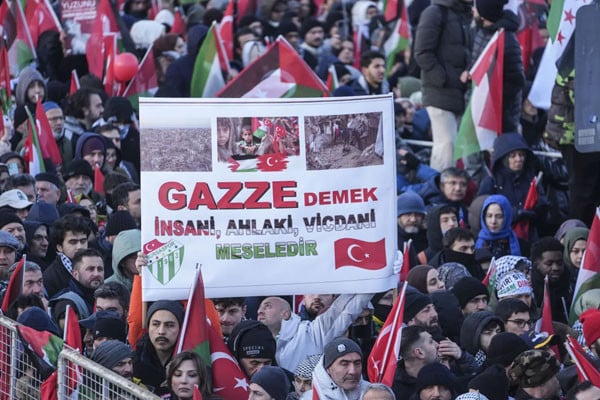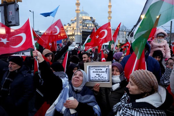 نئے سال کے پہلے دن ترکیہ کے شہر استنبول میں غزہ کے فلسطینیوں کے ساتھ اظہارِ یکجہتی اور اسرائیلی جنگ کے خاتمے کے مطالبے کے لیے ہزاروں افراد سڑکوں پر نکل آئے۔