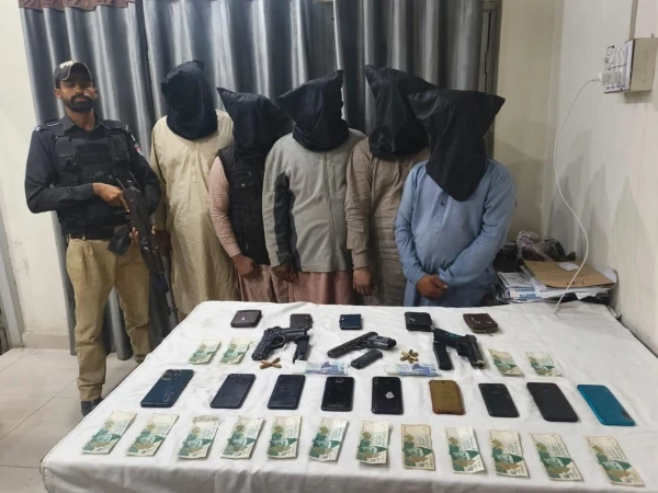 پاک کالونی پولیس نے کارروائی کرتے ہوئے ڈکیتی اور لوٹ مار کی 100 سے زائد وارداتوں میں ملوث 5 رکنی ڈکیت گروہ کو گرفتار کرکے ان کے قبضے سے اسلحہ، نقدی، موبائل فونز اور موٹر سائیکلیں برآمد کرلیں۔