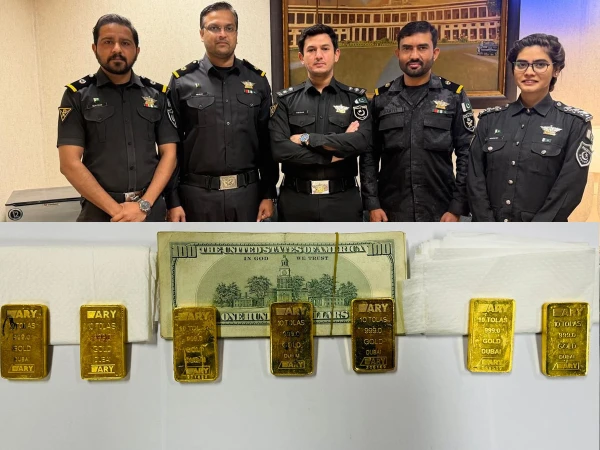 اسسٹنٹ کلکٹر جے آئی اے پی خضر فیض کے مطابق مسافر کے سامان کی اسکیننگ کے دوران فی 10 تولہ وزن کے 7 گولڈ بار کی نشاندہی ہوئی، مشکوک مسافر کو روک کر جسمانی تلاشی لی جس پر 7ہزار امریکی ڈالر بھی برآمد ہوئے۔