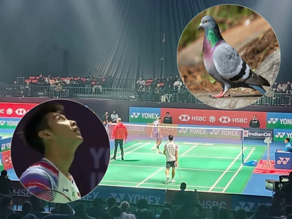 سوشل میڈیا پر وائرل ویڈیو میں دیکھا جاسکتا ہے کہ انڈین اوپن بیڈمنٹن کے میچ کے دوران پرندے کی بیٹ گرنے کے باعث رک گیا۔