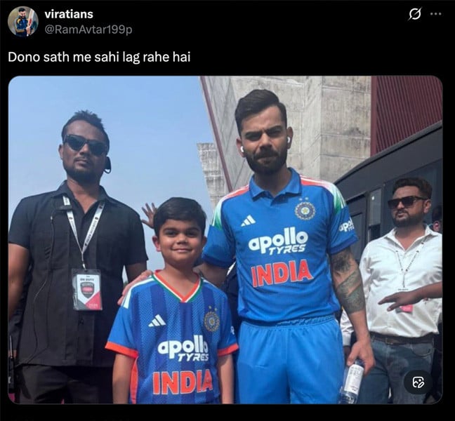 یہ دلچسپ لمحہ اُس وقت سامنے آیا جب وڈودرا میں نیوزی لینڈ کے خلاف ایک روزہ میچ سے قبل ویرات کوہلی کی ایک تصویر سوشل میڈیا پر وائرل ہوئی۔ تصویر میں کوہلی ایک ننھے بچے کے ساتھ کھڑے دکھائی دے رہے ہیں، جس کی معصوم صورت اور کوہلی سے غیر معمولی مشابہت نے مداحوں کے دل جیت لیے۔