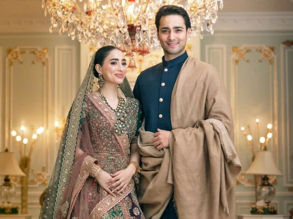 جنید صفدر نے مہندی کی تقریب میں گہرے نیوی بلیو رنگ کا روایتی کرتا زیب تن کیا، کرتے پر سنہری بٹن اور سادہ کٹ نے شاہانہ تاثر دیا اور لباس کے ساتھ سنہری، براؤن شال کو روایتی انداز میں کندھے پر ڈالا گیا۔