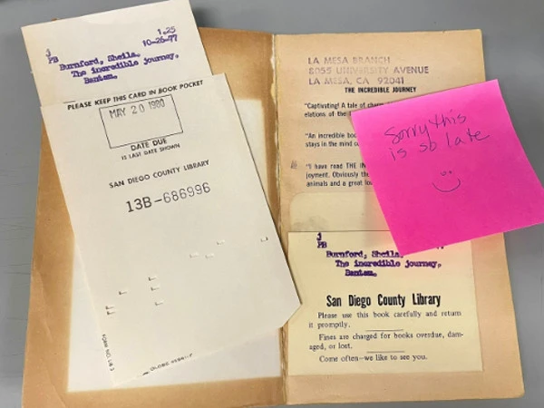 ریاست کیلیفورنیا کی سان ڈیاگو کاؤنٹی لائبریری کی برانچ منیجر کیسی کوڈیون نے بتایا کہ جنوری کے شروع میں انہوں نے ایک پیکج کھولا جس میں سے ایک کتاب نکلی جس کو برسوں پہلے جمع کرایا جانا تھا۔
