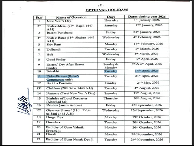 وفاقی حکومت نے سال 2026 کے لیے سرکاری اور اختیاری تعطیلات کا اعلان کر دیا۔