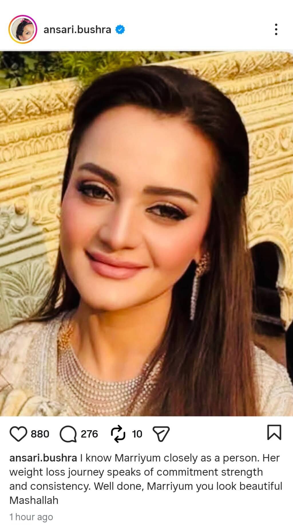 بشریٰ انصاری نے سوشل میڈیا پر اپنے تبصرے میں لکھا کہ میں مریم اورنگزیب کو قریب سے جانتی ہوں، انکا وزن کم کرنے کا سفر کمٹمنٹ اور مستقل مزاجی کا ثبوت ہے۔ مریم آپ بہت خوبصورت لگ رہی ہیں، ماشا اللہ۔