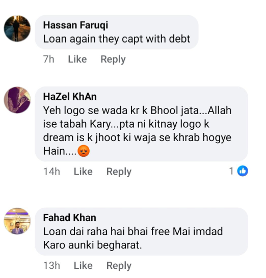 دوسری جانب، سلمان اقبال کے بیان پر انہیں شدید تنقید کا نشانہ بنایا جارہا ہے، صارفین کا ماننا ہے کہ اتنے بڑے جانی ومالی نقصان کے بعد کسی قسم کی گرانٹ کے بجائے قرض کی پیشکش کیوں کی جارہی ہے۔