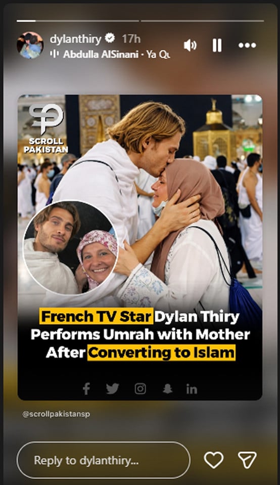 سوشل میڈیا پر فرانسیسی اداکار ڈیلن تھیری کی ایک پوسٹ وائرل ہورہی ہے جس میں وہ اپنی والدہ کے ساتھ مکہ مکرمہ میں موجود ہیں۔