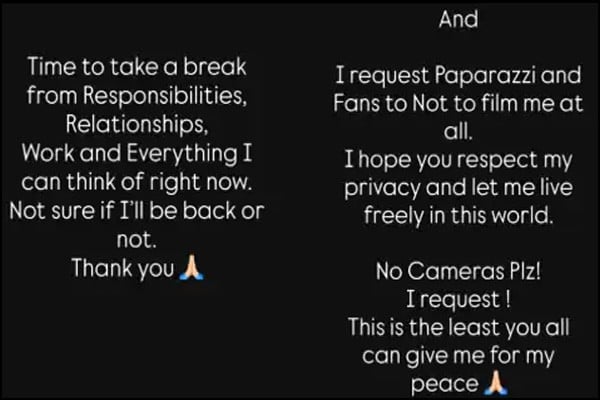 واضح رہے کہ اس سے قبل نیہا ککڑ نے ایک پوسٹ میں اعلان کیا تھا کہ وہ ذمے داریوں، تعلقات اور کام سے وقتی وقفہ لے رہی ہیں، اور انہوں نے فوٹوگرافروں اور مداحوں سے درخواست کی تھی کہ انہیں فلمایا نہ جائے اور ان کی نجی زندگی کا احترام کیا جائے۔ یہی پیغام بعد ازاں حذف کردیا گیا تھا، جس کے بعد ان کی طلاق سے متعلق چہ مگوئیاں شروع ہوگئیں۔