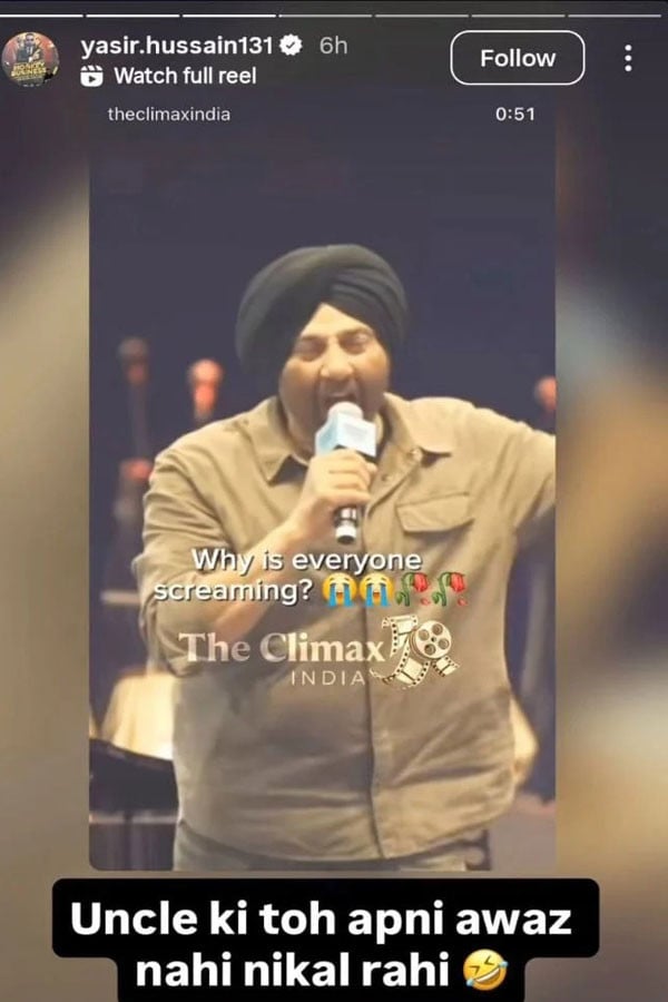 انسٹاگرام پر جب یہ ویڈیو وائرل ہوئی تو یاسر حسین کب یہ موقع ہاتھ سے جانے دینے والے تھے فوراً کمنٹ کے ساتھ اپنی انسٹاگرام اسٹوری میں شییئر کیا کہ انکل کی تو اپنی آواز نہیں نکل رہی۔