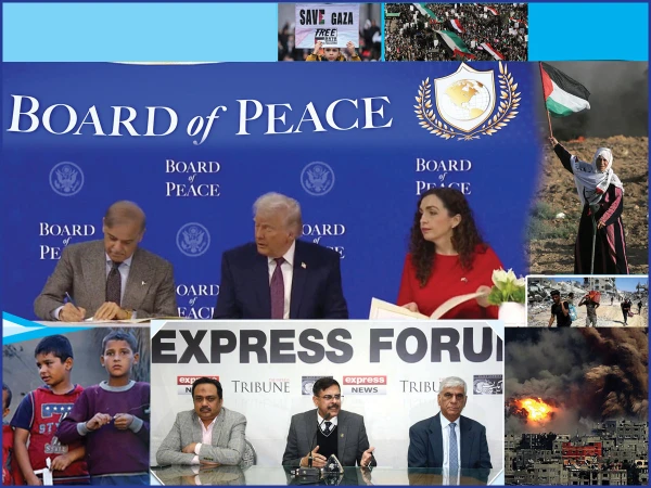 امریکی صدر ڈونلڈ ٹرمپ کی میزبانی میں غزہ امن بورڈ کے چارٹر پر دستخط ہوئے، پاکستان کی جانب سے وزیراعظم پاکستان محمد شہباز شریف نے دستخط کیے اور اس موقع پر دونوں رہنماؤں میں خوشگوار جملوں کا تبادلہ بھی ہوا۔ غزہ امن بورڈ اور اس میں پاکستان کی شمولیت کے حوالے سے عوام کے ذہنوں میں متعدد سوالات گردش کر رہے ہیں جن کے جوابات جاننے کیلئے ’’ایکسپریس فورم‘‘ میں ایک خصوصی مذاکرہ کا اہتمام کیا گیا جس میں ماہرین امور خارجہ، سیاسی اور دفاعی تجزیہ کاروں کو مدعو کیا گیا۔ فورم میں ہونے والی گفتگو نذر قارئین ہے۔