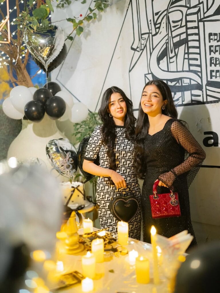 تقریب میں ان کی بہن، ایمان خان، بھی بلیک میں ان کے ہم رنگ تھیں۔