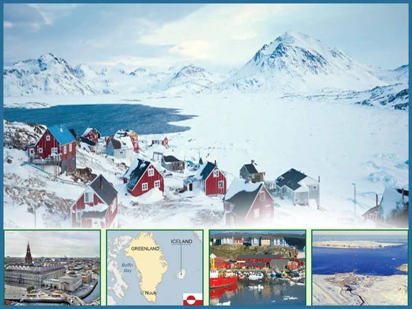 گرین لینڈ کا نام اسکینڈے نیویا کے آباد کاروں نے متعارف کرایا تھا۔ گرین لینڈ ڈینش زبان کا لفظ ہے جس کا مطلب ’’لوگوں کی سرزمین‘‘ ہے۔ یہ خودمختار ملک ڈنمارک کی مملکت کا حصہ ہے اور بحر منجمد شمالی اور بحراوقیانوس کے درمیان میں واقع ہے۔ اس کا رقبہ اکیس لاکھ چھیاسٹھ ہزار مربع کلومیٹر ہے جس میں سے برفانی تہہ کا رقبہ سترہ لاکھ پچپن ہزار مربع کلومیٹر ہے جو کل رقبے کا اکیاسی فی صد بنتا ہے اور اس کی آبادی تقریباً ستاون ہزار نفوس پر مشتمل ہے۔