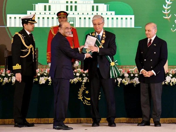 صدر مملکت آصف علی زرداری نے پاکستان کے دورے پر موجود قازقستان کے صدر قاسم جومارت توکایووف کو نشان پاکستان سے نواز دیا۔