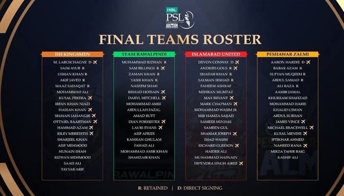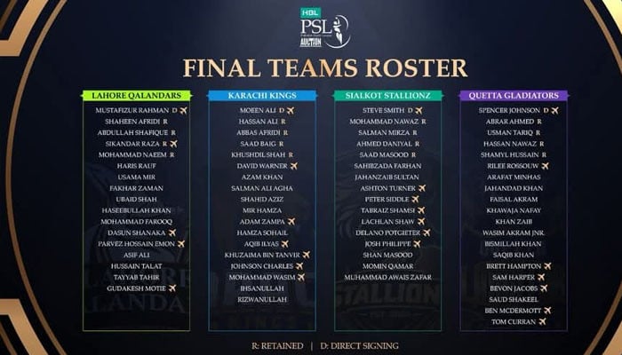 پی ایس ایل 11 کے لیے تمام 8 ٹیموں کے مکمل اسکواڈز درج ذیل ہیں۔