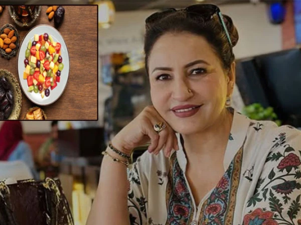 صبا فیصل نے بتایا کہ وہ رمضان میں فروٹ چاٹ دوپہر تقریباً 12 بجے ہی تیار کرلیتی ہیں اور اس میں چاٹ مصالحہ بھی اسی وقت شامل کر دیتی ہیں کیونکہ افطار شام میں ہوتا ہے۔