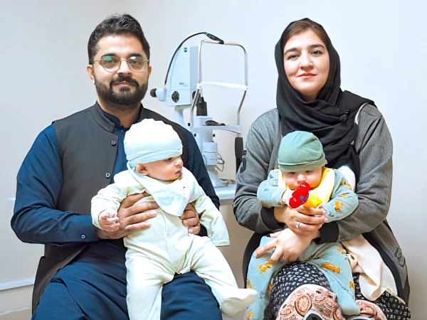 7 ماہ کے جڑواں بچوں ابراہیم اور اسماعیل میں آر او پی کی تشخیص ہوئی تھی، جس کے بعد ڈاکٹروں نے فوری علاج شروع کیا اور بینائی کو مستقل نقصان سے بچا لیا۔