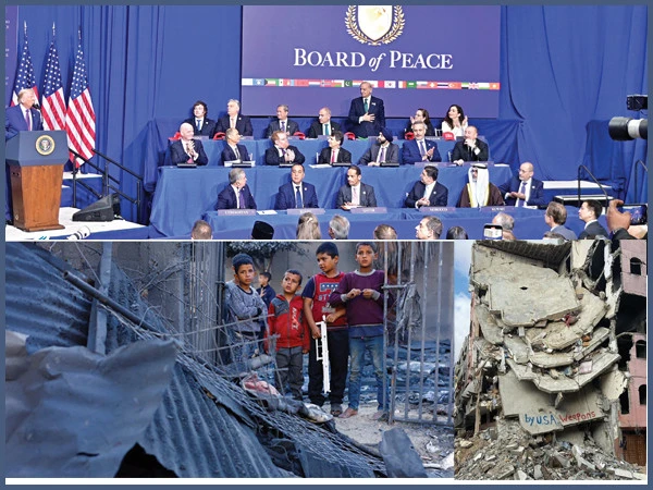 اس سے قبل امریکی صدر ڈونلڈ ٹرمپ کی سربراہی میں قائم ہونے والے بورڈ آف پیس کا افتتاحی اجلاس 19 فروری کو منعقد ہوا جس میں اسرائیل پاکستان اور دیگر 7 مسلم ممالک سمیت 47 ممالک کے وفود نے شرکت کی.امریکی صدر ڈونلڈ ٹرمپ نے بورڈ آف پیس کے پہلے اجلاس سے خطاب کرتے ہوئے کہا ہے کہ بورڈ آف پیس اسوقت کی سب سے اہم ڈیویلپمنٹ ہے اور دنیا میں امن کے قیام کیلئے اس کا کوئی متبادل نہیں۔ اس کابنیادی مقصد غزہ کی بحالی اور تعمیر نو ہے اور مختلف ممالک نے اسکی تعمیر نو کے لئے 7 ارب ڈالر کے عطیات کے وعدے بھی کئے ہیں۔ امریکہ نے بھی اس سلسلے میں دس ارب ڈالر دینے کا اعلان کیا ہے۔ انہوں نے کہا کہ امن کے قیام کیلئے سب ملکر کام کر رہے ہیں اور غزہ امن بورڈ کے اراکین نے اسٹیبلائزیشن فورس کے قیام کیلئے اپنی پولیس اور افواج بجھوانے کا وعدہ بھی کیا ہے۔ انہوں نے اجلاس میں شرکت کرنے والے ممالک کا شکریہ ادا کیا۔ اس موقع پر انہوں نے ایک بار پھر آٹھ جنگیں رکوانے اور وزیراعظم شہباز شریف فیلڈ مارشل کی تعریف کرتے ہوئے پاک بھارت جنگ میں طیارے گرنے کا ذکر کیا۔ انہوں کہا کہ ایران نے معاہدہ نہ کیا تو اسے خطرناک نتائج کا سامنا کرنا پڑے گا اور حماس کو پلان کے مطابق غیر مسلح ہونا ہوگا۔ یہ امر قابل ذکر ہے کہ ڈونلڈ ٹرمپ نے اپنی تقریر میں آزاد فلسطینی ریاست کے قیام کا تذکرہ کسی انداز میں بھی نہیں کیا اور نہ ہی اسرائیل کی طرف سے جنگ بندی کی خلاف ورزی کرتے ہوئے جارحیت جاری رکھنے کی مذمت میں کچھ کہا۔