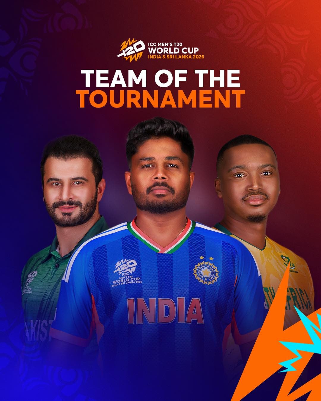 بھارت کے وکٹ کیپر بلے باز اور ایونٹ کے بہترین کھلاڑی سنجو سیمسن بھی ٹیم میں شامل ہیں۔ ان کے ساتھ بھارتی کھلاڑی ایشان کشن، ہاردک پانڈیا اور فاسٹ بولر جسپرت ببمراہ کو بھی ٹیم میں جگہ دی گئی ہے۔