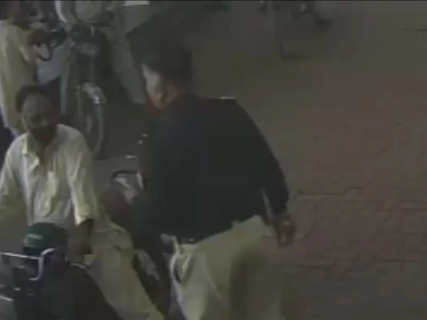 سی سی ٹی وی فوٹیج میں دیکھا جا سکتا ہے کہ ایک اے ایس آئی پٹرول پمپ پر موٹرسائیکل پر بیٹھے بائیک رائڈر پر تشدد کر رہا ہے۔