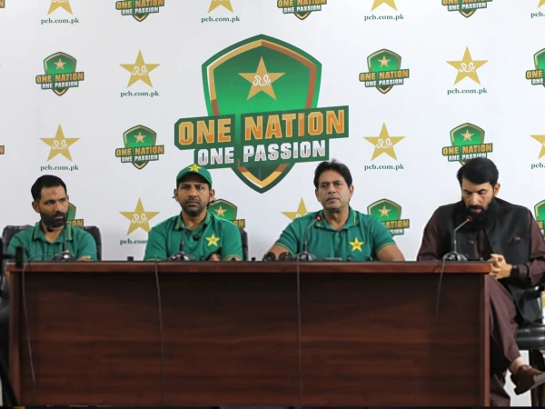قذافی اسٹیڈیم لاہور میں سلیکشن کمیٹی کے ممبران عاقب جاوید، مصباح الحق، سرفراز احمد اور اسد شفیق نے مشترکہ پریس کانفرنس کی۔