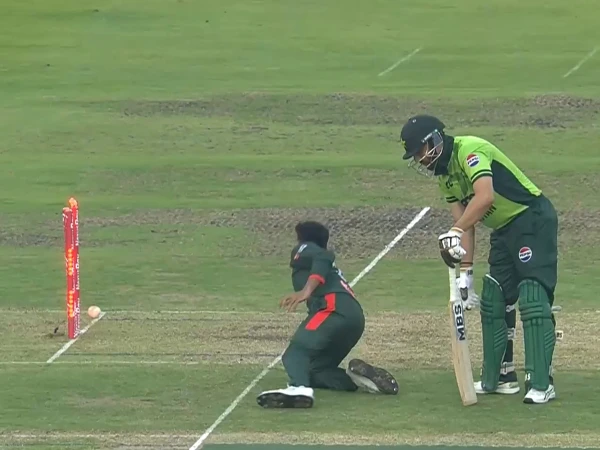 سلمان آغا نے گیند اٹھاکر دینا چاہی لیکن اسی لمحے مہدی حسن نے گیند اٹھاکر وکٹ پر مار دی جس کے بعد تھرڈ امپائر نے انہیں آؤٹ قرار دیا۔