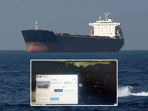 آبنائے ہرمز سے گزر کر آنے والا پہلا پاکستانی بحری جہاز ایم ٹی کراچی خلیج عمان سے بحیرہ عرب میں داخل ہوگیا ہے۔