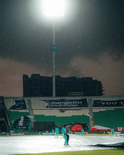 قذافی اسٹیڈیم لاہور میں شیڈول میچ بارش کے باعث بغیر کوئی گیند کرائے مسوخ ہوگیا۔