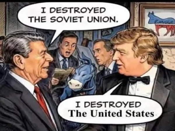 ایک اور پوسٹ میں امریکی صدر کا مذاق اُڑایا گیا جس میں وہ سویت یونین کو تباہ کرنے کے جواب میں کہہ رہے ہیں کہ میں نے امریکا کو تباہ کیا۔