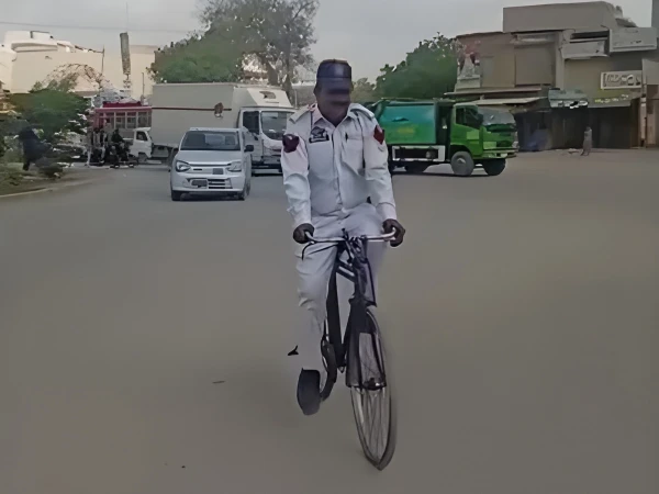 پیٹرولیم مصنوعات کی قیمتوں میں ہوشربا اضافے سے پریشان ٹریفک پولیس اہلکار نے ڈیوٹی پر آنے جانے کے لیے سائیکل کا استعمال شروع کر دیا۔