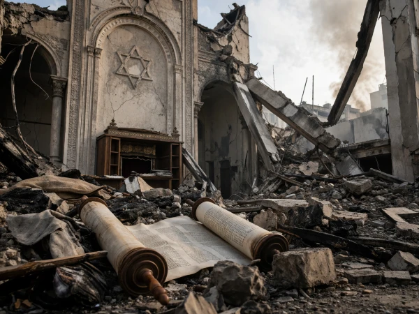 یہودی عبادت گاہ کے ملبے سے عبرانی زبان میں مذہبی متون اور مقدس کتب بھی بکھری ہوئی ملیں جبکہ ایرانی ہلالِ احمر کے اہلکاروں نے تورات کے نسخے بھی ملبے سے نکالے۔