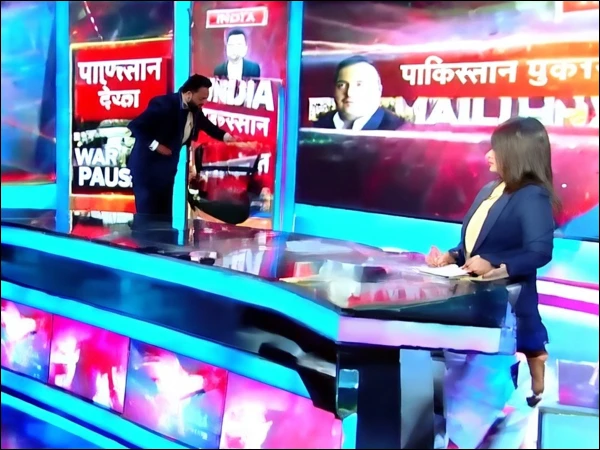 ارنب گوسوامی کے علاوہ سوشل میڈیا پر ایک اور ویڈیو وائرل ہے، جس میں ایک بھارتی اینکر پاکستان کی کامیابی کا تذکرہ کرتے ہوئے جذباتی ہوجاتا ہے اور غصے میں نیوز روم کا سیٹ توڑ دیتا ہے۔