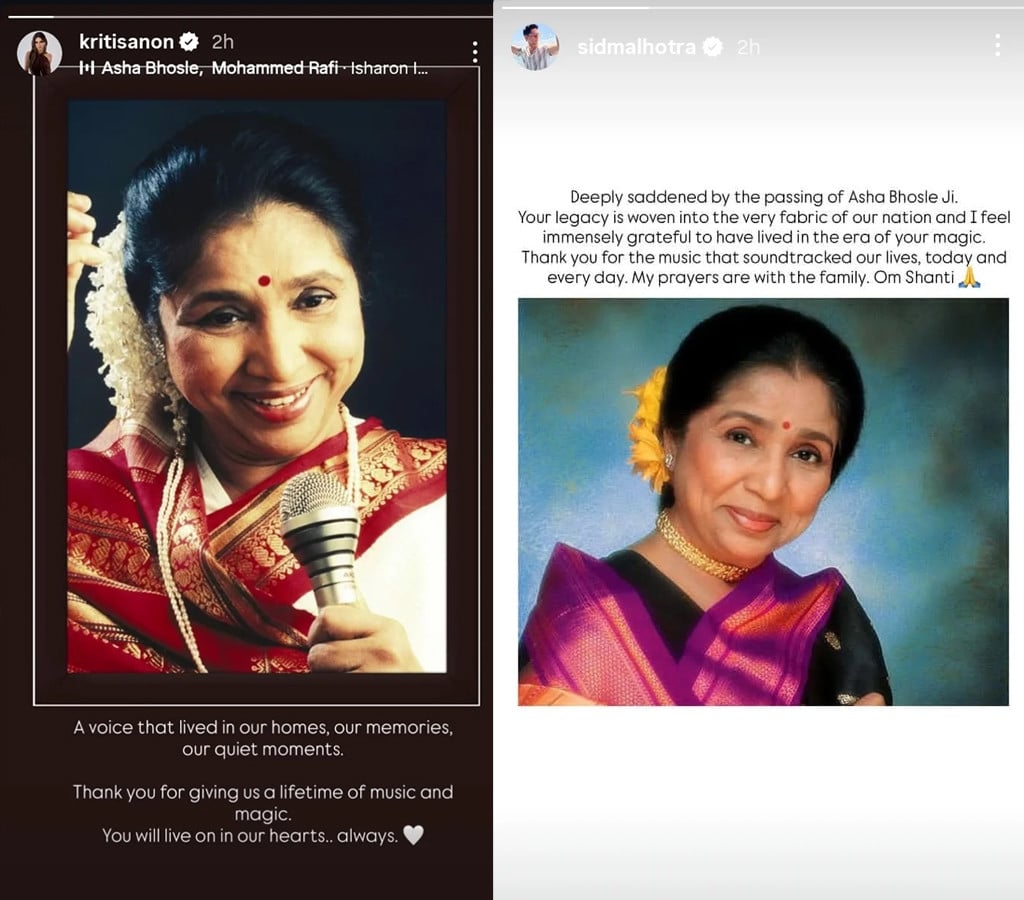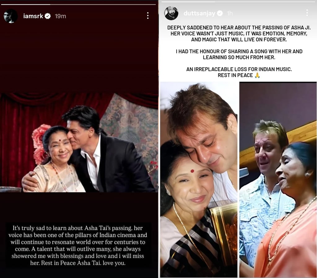 نامور اداکار سنجے دت نے لکھا ’آشا جی کے انتقال کی خبر سن کر شدید افسوس ہوا، ان کی آواز صرف موسیقی نہیں تھی بلکہ جذبات، یادیں اور جادو تھی جو ہمیشہ زندہ رہے گا‘۔