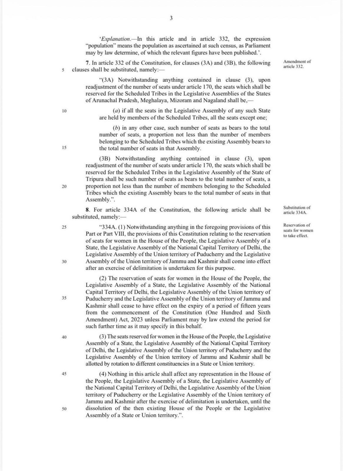 بی جے پی حکومت بھارتی آئین کے آرٹیکل 81,82,170, 330 اور 332 میں ترمیم کا ارادہ رکھتی ہے۔ نئے بل میں 2020 کی حلقہ بندیوں کے دوران بڑھائی گئی نشستوں کی حد ختم کی جارہی ہے۔ بل کا مقصد حلقہ بندی کے عمل کو بی جے پی کے سیاسی مفادات کے حساب سے مکمل کرنا ہے۔