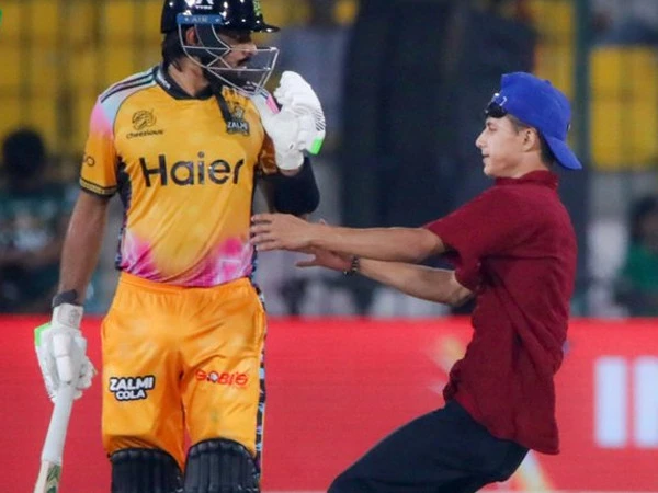 قبل ازیں پشاور زلمی کے کپتان بیٹنگ کے دوران سینچری اسکورکرنے پر بابر اعظم کو مبارکباد دینے کے لیے ایک مداح وکٹ پر پہنچ گیا تھا جسے سیکورٹی اہلکاروں قابو کر لیا تھا۔