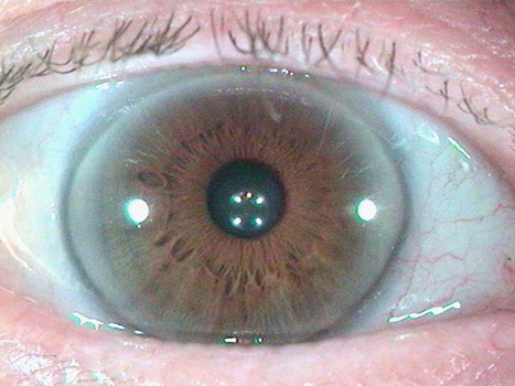 آنکھ کی پتلی کے گرد عموماً گہری رنگت کی آؤٹ لائن ہوتی ہے جسے پتلی کا حلقہ (آئرس رِنگ) کہا جاتا ہے اگر یہ حلقہ سفید ہے تو یہ خون میں کولیسٹرول کی بلند سطح کو بھی ظاہر کرتا ہے اسی طرح پپوٹوں پر چربی کے مجموعے بھی کولیسٹرول کی بلند سطح اور امراضِ قلب کو ظاہر کرتے ہیں۔