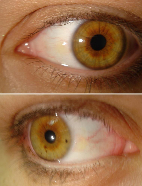 اگر پپوٹوں کی رنگت پیلی ہو تو یہ جسم میں خون کی کمی کو ظاہر کرتا ہے اور اس کا علاج صرف فولاد سے بھرپور غذاؤں کا استعمال ہے۔