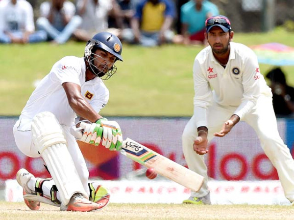 تفصیلات کے مطابق گال ٹیسٹ میں چندیمل کی عمدہ بیٹنگ کی بدولت سری لنکن ٹیم میچ میں واپس آگئی، 192رنز کے خسارے میں جانے والی ٹیم دوسرے دن کے اختتام پر 5رنز پر 2 وکٹ گنواکر شدید مشکلات میں گھر گئی تھی، آئی لینڈرز تیسرے دن 82.2 اوورز میں 367رنز بناکر آل آؤٹ ہوگئے، 5رنز 2 کھلاڑی آؤٹ سے دوسری اننگز کو شروع کرنے والی سری لنکن ٹیم کو دن کی پہلی ہی گیند پر نائٹ واچ مین دھمیکا کے آؤٹ ہونے کا صدمہ ملا، انھیں ورون کی گیند پر راہنے نے کیچ کیا، تاہم تجربہ کار کمار سنگاکارا اور کپتان انجیلو میتھیوز کے درمیان چوتھی وکٹ کیلیے 87رنز کی ساجھے داری سے سری لنکن ٹیم نے کچھ سانس لیا، 92 کے ٹوٹل پر کیریئر کی الوداعی اننگز کھیلنے والے سنگاکارا ایشون کا شکار بن گئے۔