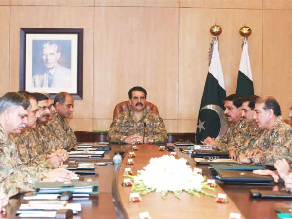 پاک فوج کے سربراہ جنرل راحیل شریف نے کہا ہے کہ ملک میں دیرپا اور پائیدار امن یقینی بنانے کے لیے فوجی آپریشن کے برابر حکومتی اقدامات بھی ضروری ہیں، انھوں نے کہا کہ دہشتگردی اور شدت پسندی کے خاتمے کے لیے جاری آپریشن میں پوری قوم کی حمایت حاصل ہے۔ کورکمانڈرز کانفرنس میں آرمی چیف کے مجوزہ دورہ امریکا کے حوالے سے بریفنگ دی گئی اور اس دورے کے دوران پاکستانی موقف پر بھی غور کیا گیا جہاں وہ نئی ابھرتی ہوئی علاقائی حقیقتوں میں پاکستان کے تناظر کو واضح طور پر اجاگر کریں گے۔ آرمی چیف نے شرکا کو اپنے دورہ سعودیہ پر اعتماد میں لیا۔