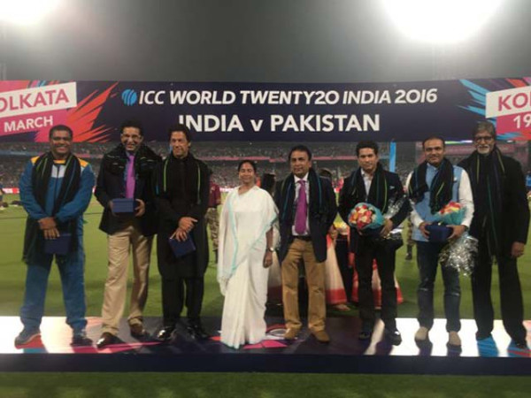 پاک بھارت میچ سے قبل مغربی بنگال کی وزیراعلیٰ ممتا بینرجی نے بھارتی سپر اسٹار امیتابھ بچن اور لیجنڈ کرکٹر عمران خان سمیت دونوں ممالک کے سابق مایہ ناز کرکٹرز کو اعزازات سے نوازا۔