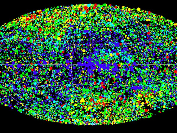 روزیٹ ایکس سیٹلائٹ کا تیار کردہ تفصیلی نقشہ جس مٰں مختلف نقطے کائنات میں موجود اجرامِ فلکی کو ظاہر کرتے ہیں۔ فوٹو: بشکریہ میکس پلا نک انسٹی ٹیوٹ